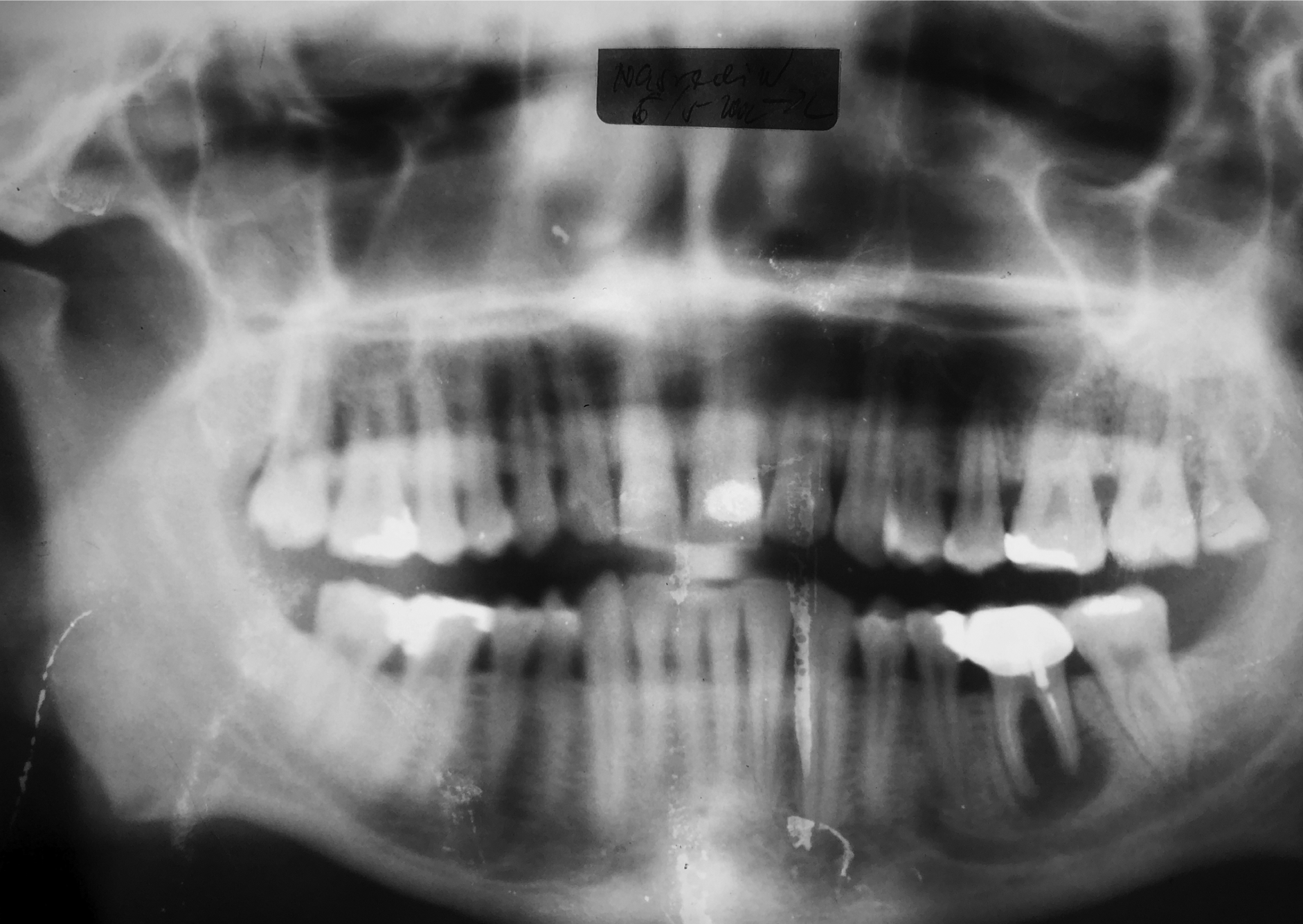 Der Patient kam im Mai 2002 mit Zahnschmerzen in Regio 36 in die Praxis. Der Zahn wurde extrahiert und die Entzündung geheilt. Aufgrund der Lückenbreite und dem Alveolarknochenvolumen wurden zwei Implantate IMPLADENT mit dem Durchmesser von 2,9 mm im Juni 2003 implantiert. Nach der Einheilung wurde eine mit Adoro verblendete Metallzahnkrone aufgesetzt. Während der folgenden 21 Jahre in Funktion stellte sich der Patient in der Praxis zu regelmäßigen Recalls vor. Die Versorgung musste einmal neu gestaltet werden. Die Implantate waren bei der letzten Kontrolle, im März 2024, also nach 21 Jahren in Funktion stabil. Aufgrund des Vergleichs von Röntgenaufnahmen kam es im Laufe der Jahre zu keiner Resorption um die Implantate.