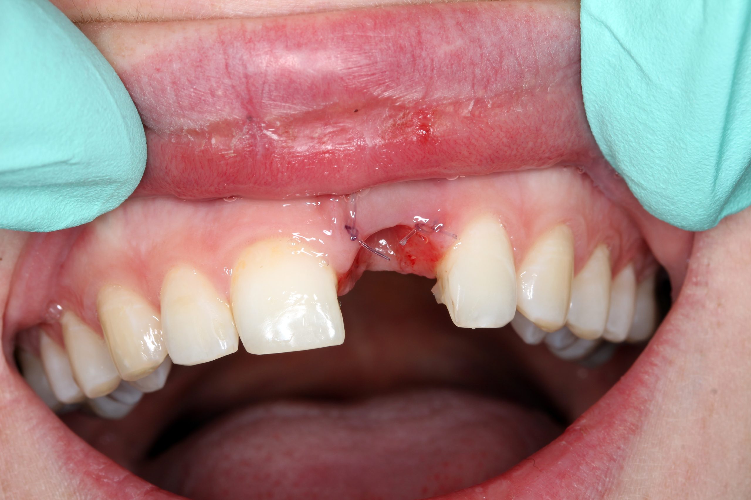 Bei dem Follow-up nach einem Monat sind keine Probleme aufgetreten. Der provisorische Zahnersatz war in das umgebende Gewebe integriert und die Ästhetik des Weichgewebes ist erhalten worden.