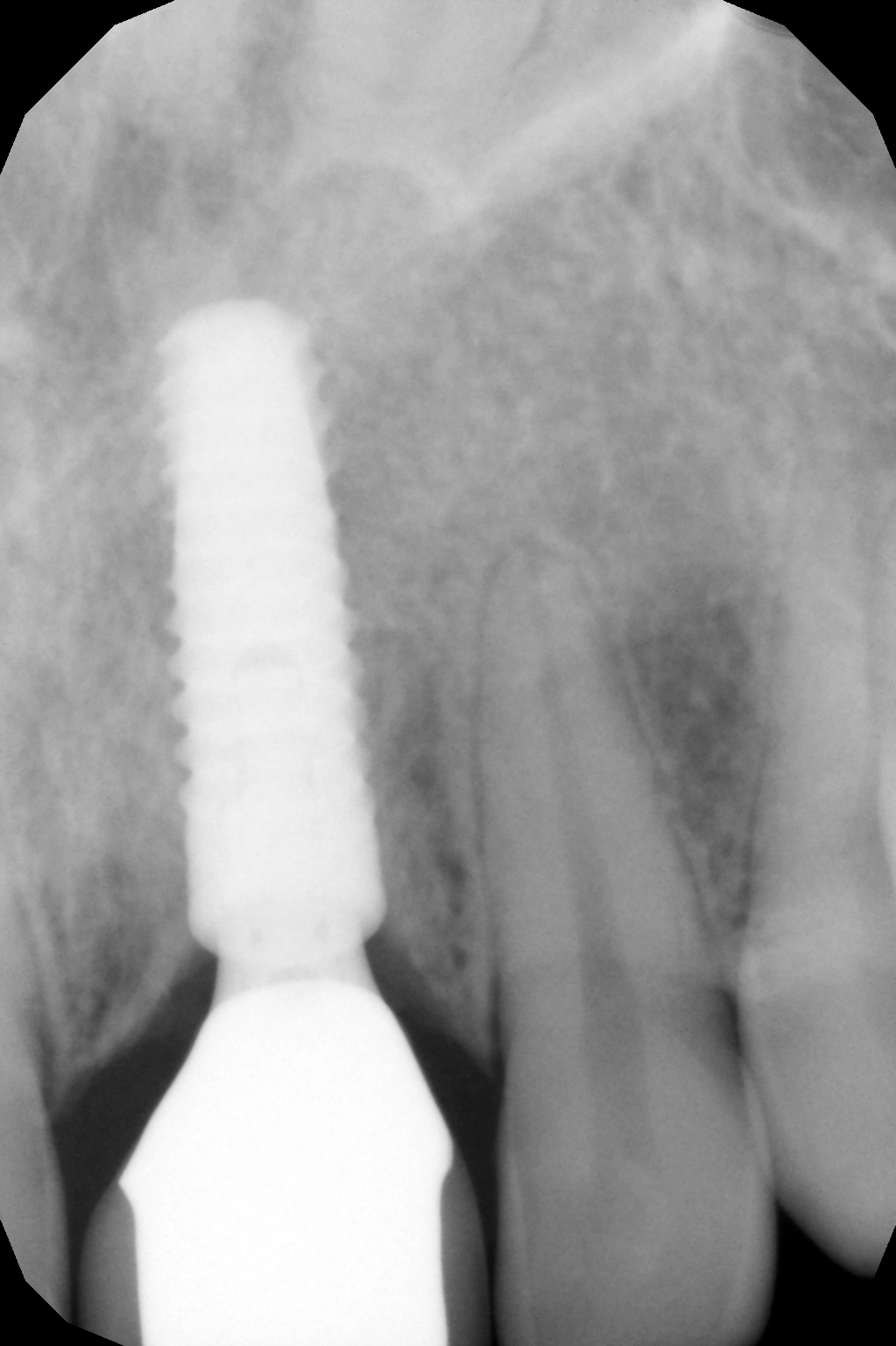Vier Monate nach der Implantation und der Sofortbelastung wurde die provisorische Krone entfernt. Eine vollkeramische Krone wurde im Labor angefertigt.